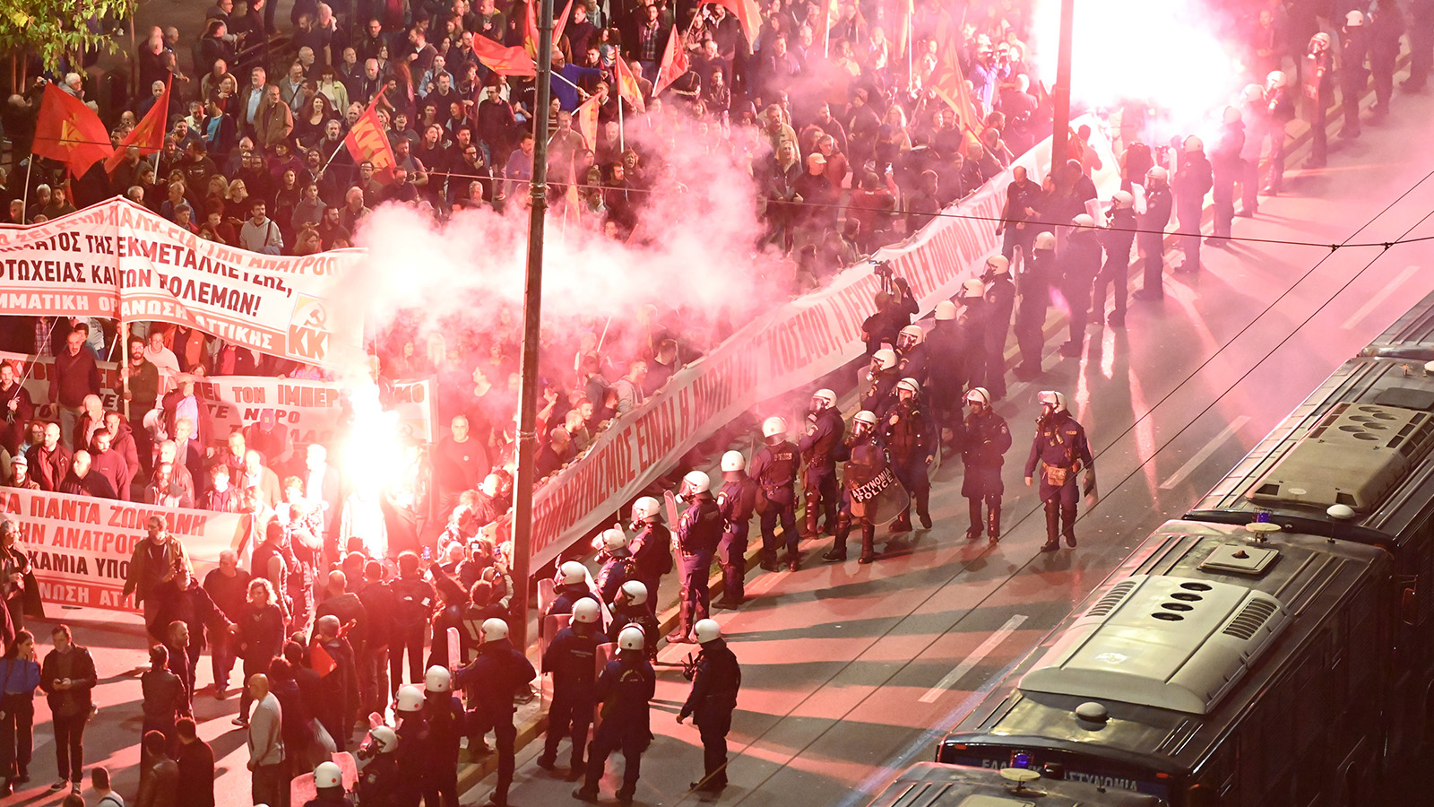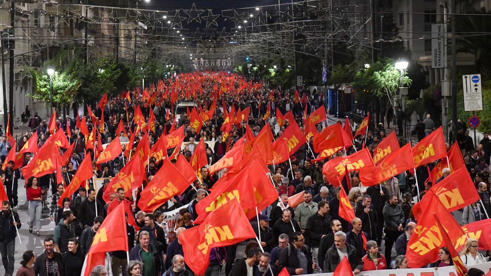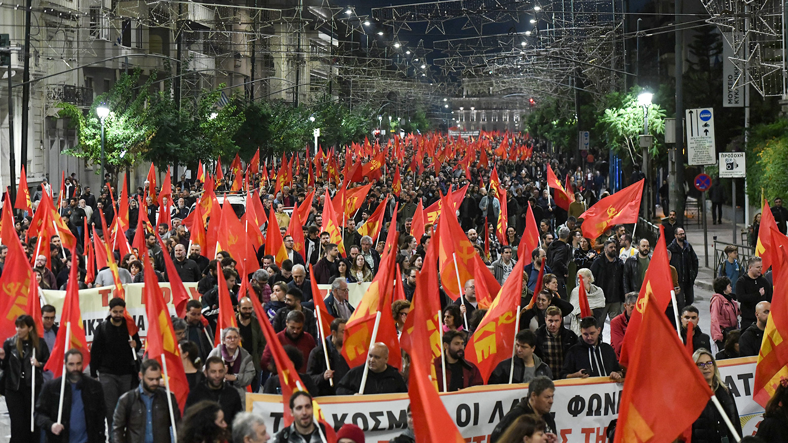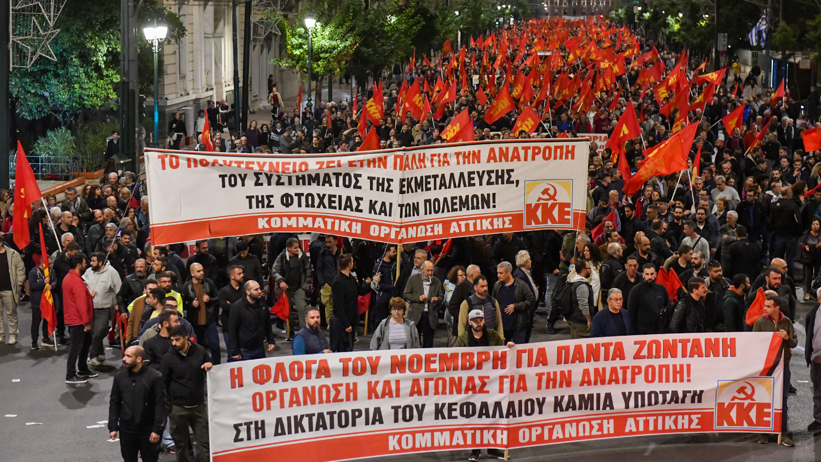 و في أثينا، غمر نهر أحمر ضخم هو تجمع الحزب الشيوعي اليوناني والشبيبة الشيوعية اليونانية المناهض للإمبريالية، الشوارع، باعثاً برسالة مفادها: «إن شعلة نوفمبر" ستبقى خالدة، وأن التنظيم والنضال من أجل الإطاحة بدكتاتورية رأس المال سيتعززان».