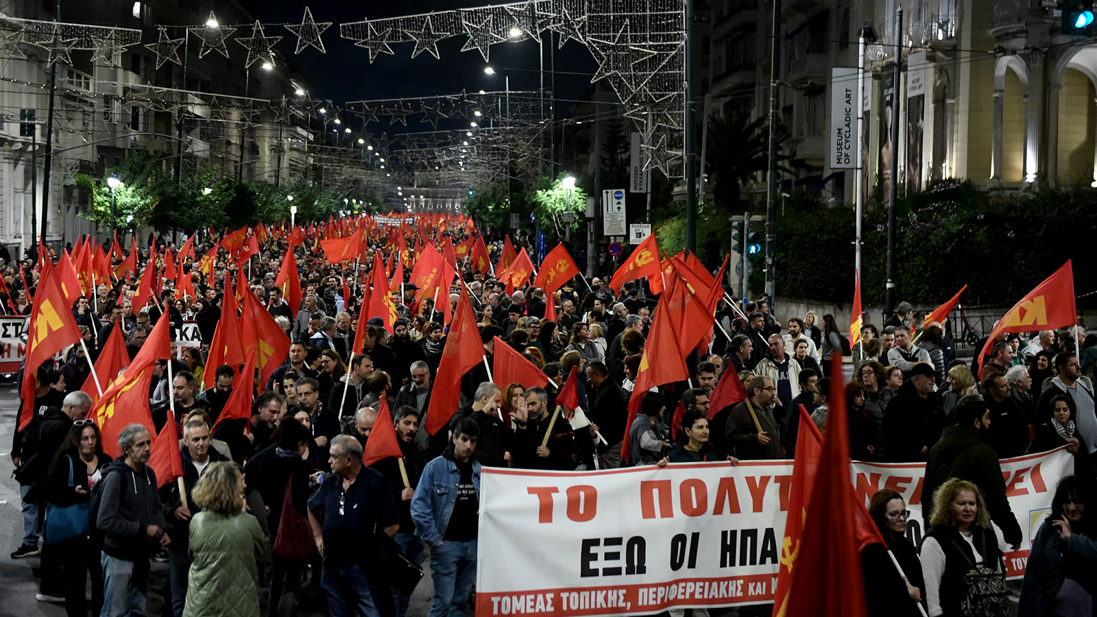 شكّلت المظاهرة المناهضة للإمبريالية لقوى الحزب الشيوعي اليوناني والشبيبة الشيوعية اليونانية باتجاه السفارة الأمريكية، نهراً أحمراً ضخماً